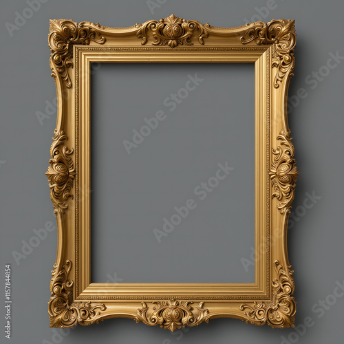 Antique carved gilded frame isolated on white background. Vintage golden rectangle frame for photo