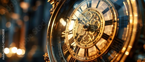 Antique clock glowing with golden light, emphasizing the value of time in business, against a dark and elegant setting