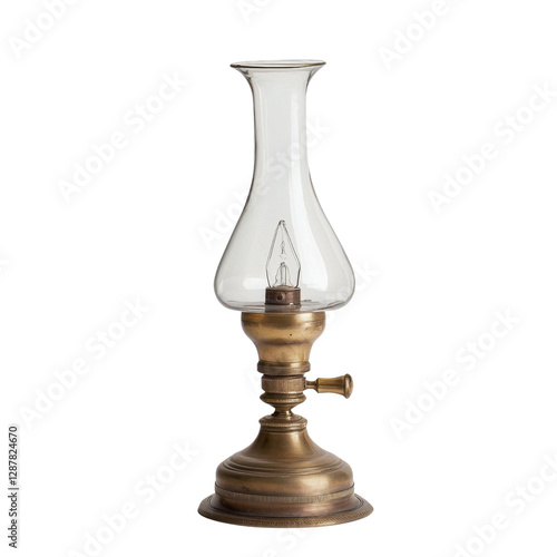 Antique oil lamp with glass shade and brass base, perfect for vintage decor. This elegant lamp adds warm ambiance to any room, evoking nostalgia and charm