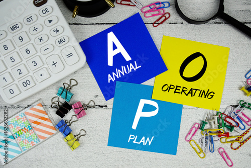 AOP abbreviation of Annual Operating Plan text phrase of business and financial concept