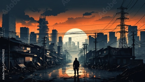Apocalyptic view of destroyed world, post apocalypse city after world war