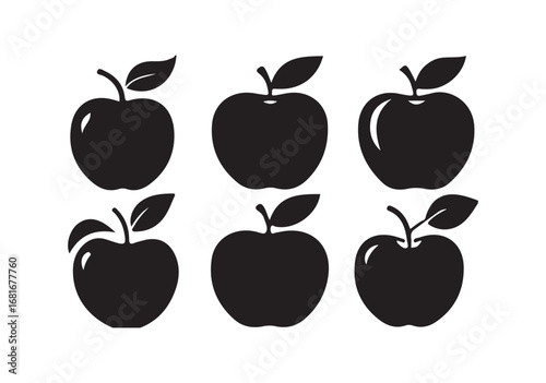 Apple icon set. Apple vector silhouette. apple fruit with leaf flat icon, vector illustration eps10.