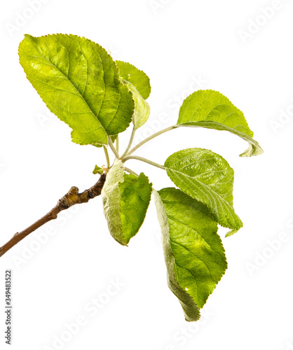 apple tree branch with green leaves on a white background