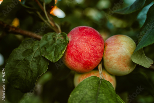 Apples on a tree in the garden. Harvest season