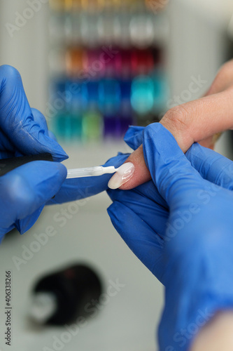 Applying Gel Polish. Formation Architecture Nail Plate. Beauty Manicure. Body Care And Beauty Treatment Concept. Professional Nail Service. Soft Focus