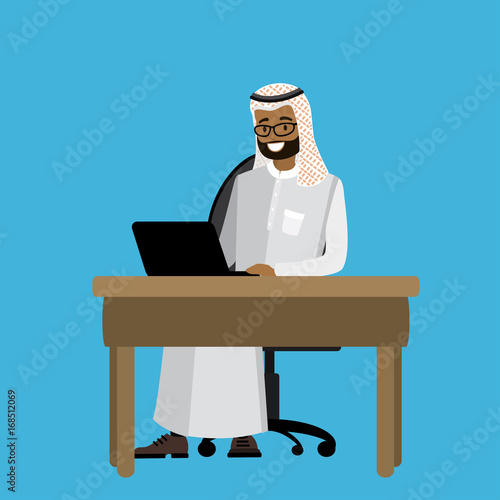 Arabic businessman working at a laptop