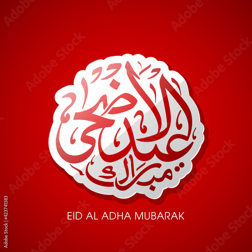 Arabic Calligraphic text of Eid Al Adha Mubarak for the Muslim community festival celebration.