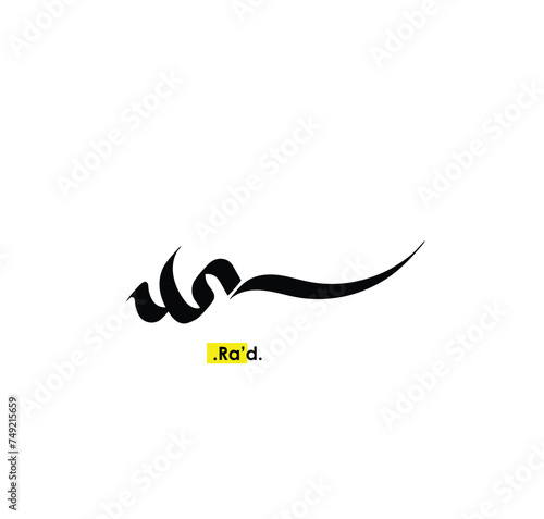 Arabic Calligraphy Name. Term is (Ra'd) with white background.