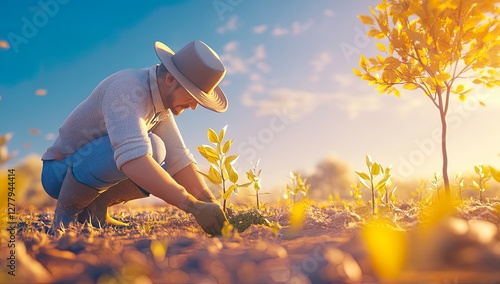 Arbor Day,Sunlight Shining, Warm Color Tone, Simple and Cute Illustration Style, Soft Lighting and Shadows, Depth in Scene, Created with C4D Software, W