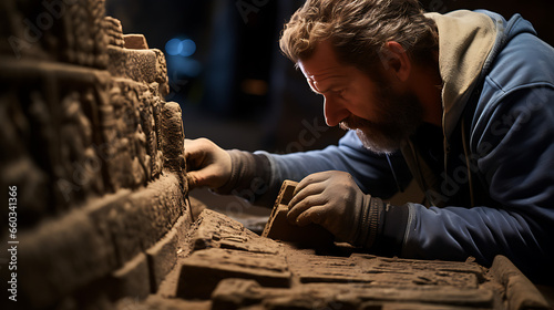 Archaeologist Brushing Dust off Artifact