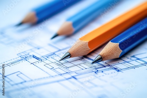 Architect designer Interior creative working hand drawing sketch plan blue
