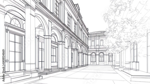 Architectural blueprint of a grand classical building complex.
