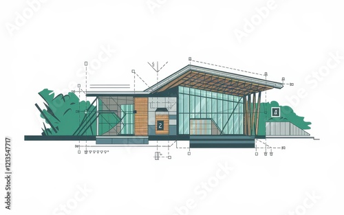 Architectural Design Modern Building Section Elevation Plan