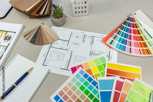 architectural drawings house blueprints with palette of colors designs for interior works