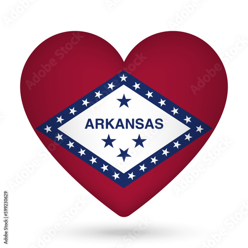 Arkansas flag in heart shape. Vector illustration.