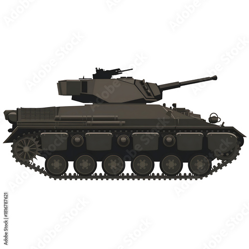 Armored Combat Vehicle: A side-view illustration of a formidable armored combat vehicle, showcasing its robust design, powerful weaponry, and tracks, ready for action.