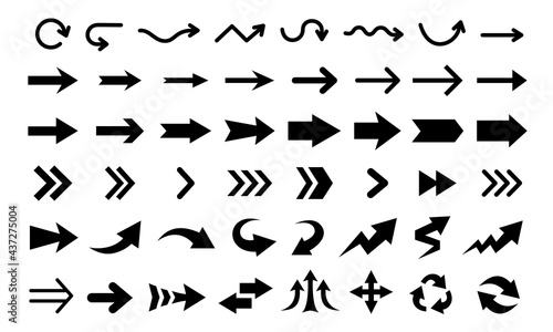 Arrows vector icons isolated on white background. Big vector set of black arrow signs and direction pointers in different styles.