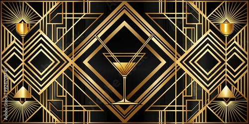 Art Deco Glamour: Sophisticated, geometric, gold, black, cocktails