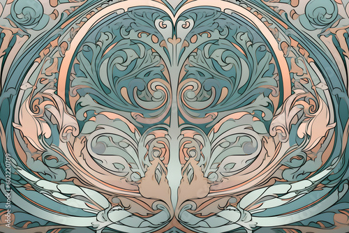 art nouveau floral reflected pastel background, Generative AI