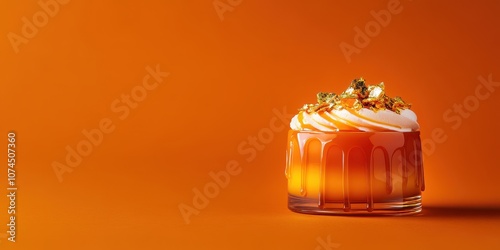 Artfully Presented Caramel Pudding with Delicate Whipped Cream and a Touch of Mint Garnish
