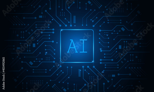 Artificial Intelligence ,AI chipset on circuit board, futuristic Technology Concept