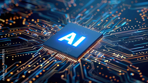 Artificial intelligence chip concept attached to digital circuit board, Generative Ai illustration