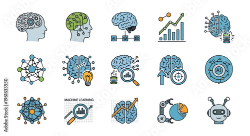 Artificial Intelligence Icons: Brain, AI, Machine Learning, Data Analysis, Robotics