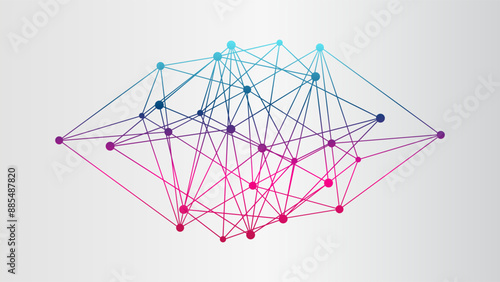 Artificial intelligence. Triangle blue pink gradient network pattern. Deep learning. Smart digital technology. AI vector illustration for science, presentation, concept design, business