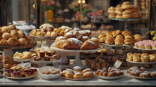 Artisan Bakery Display: Freshly Baked Pastries and Bread