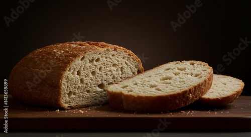 Artisan Crusty Loaf: Rustic Bread Slices, Warm Lighting