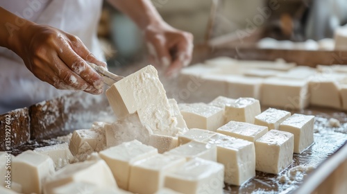 Artisan Making Fresh Tofu in a Workshop