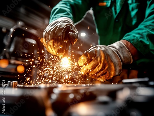 Artisan skillfully welds metal creating bright sparks dynamic composition. AI Generated