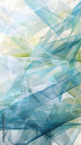 Artistic abstract wallpaper with soft lines and geometric elements in a refreshing mix of sky blue and soft lime