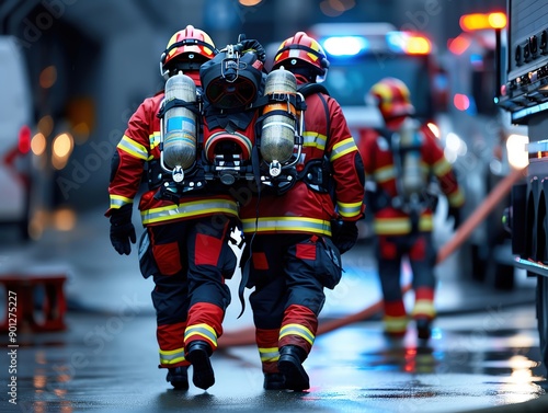 Artistic capture of firefighters providing medical assistance, representing their crucial role in emergency situations