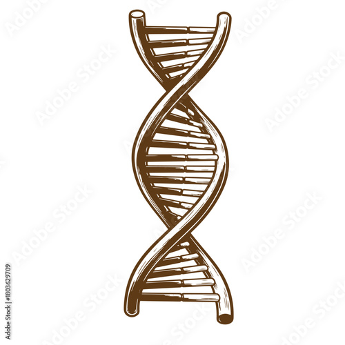 Artistic sketch illustration of a detailed brown dna double helix structure