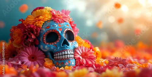 Artistic Skull Adorned with Elegant Flowers.