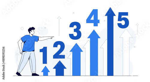 Ascending Numbers Representing Growth And Progress With A Stylized Person