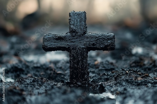 Ash Wednesday Cross, an ash crucifix. Vacation, backdrop idea. Generative Ai