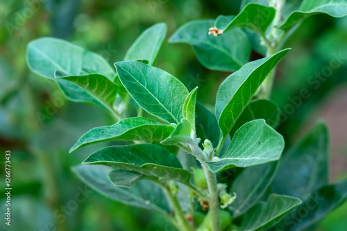 Ashwagandha plant or withania somnifera plant is ayurvedic medical plant close up