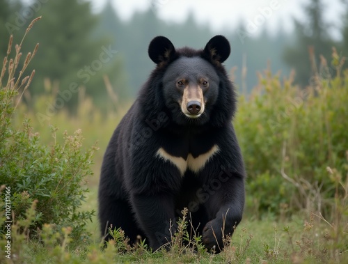 Asian Black Bear in a Forest Clearing.