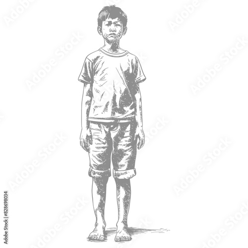 asian boy body with old engraving style
