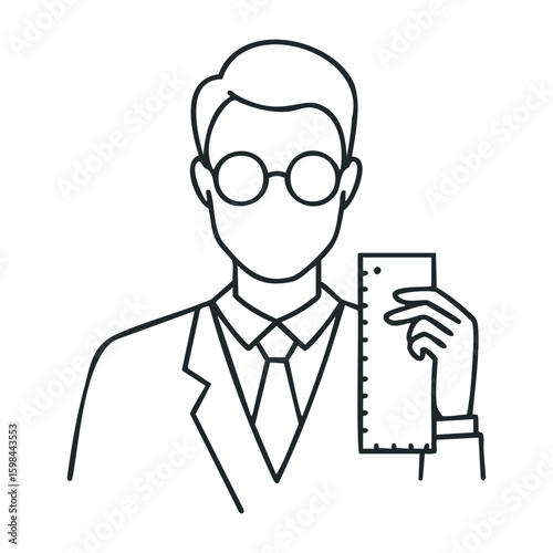 Asian male adult with glasses holding ruler in suit. Vector illustration
