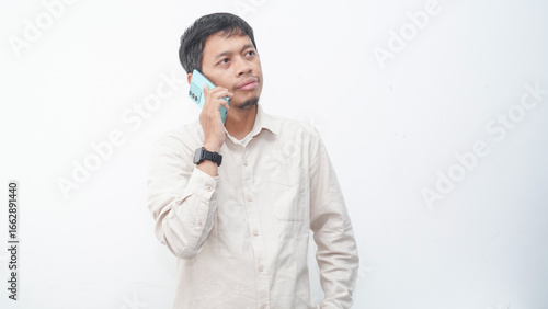 Asian man wearing shirt talking on the phone