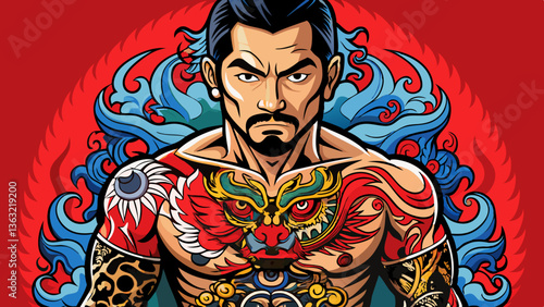 Asian man with Japanese tattoo vector file