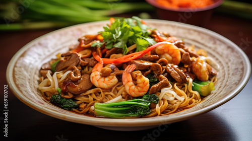Asian style noodle with sweet sauce and shrimp