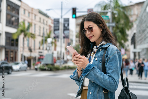 Asian travel blogger retouch photos with mobile phone about the journey.