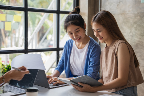 Asian women startup meeting in office