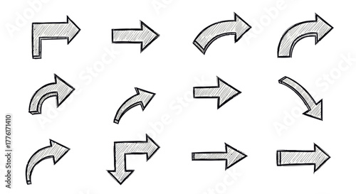 Assorted arrow illustrations in gray with black outlines on a white background.