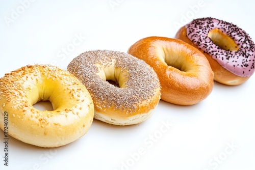 Assorted bagels topped with vibrant sprinkles for a sweet treat