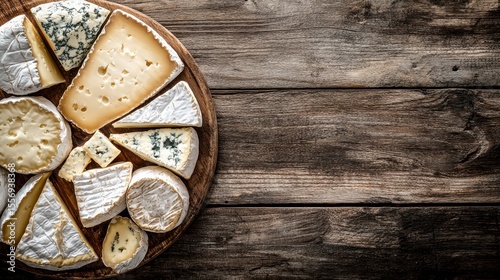 Assorted Cheeses on Wooden Board Arrangement for Gourmet Platter